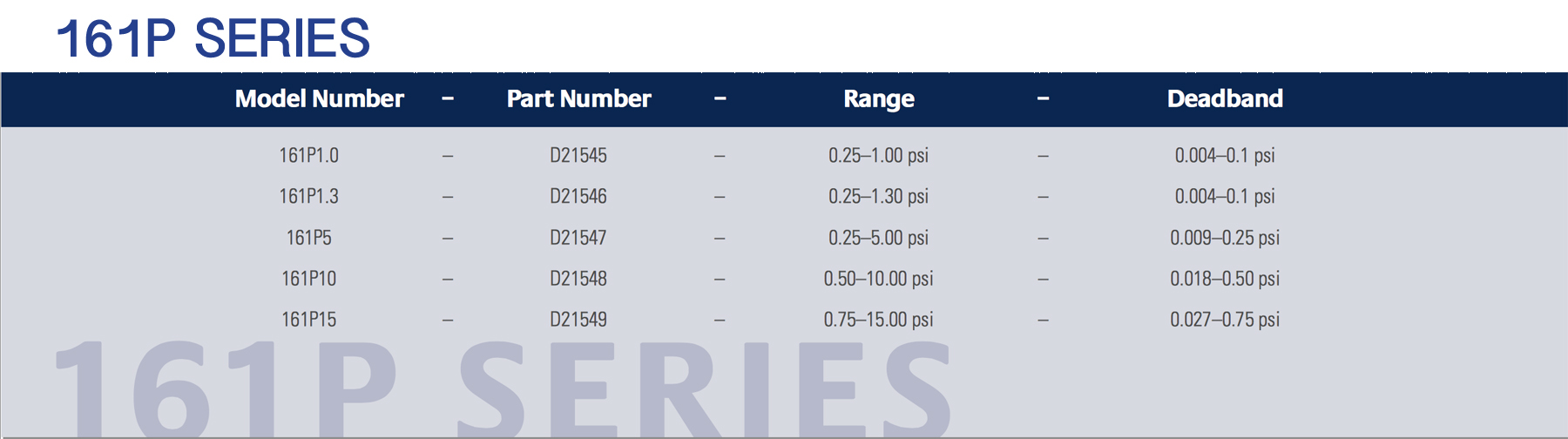 0.25–15 psi (see chart)